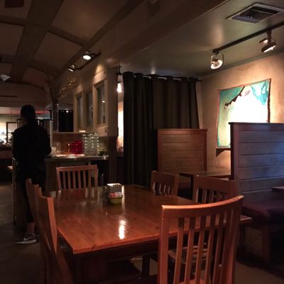 The interior is quaint and intimate, offering a cozy atmosphere for a casual meal. The occasional sound of a train speeding by adds a rhythmic, local touch to the dining experience.ambiance_potoo