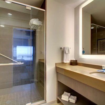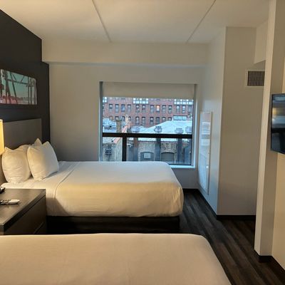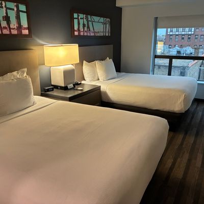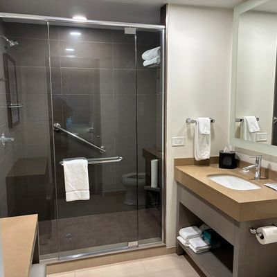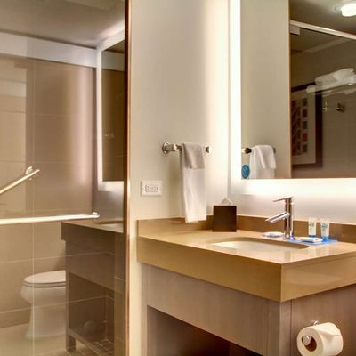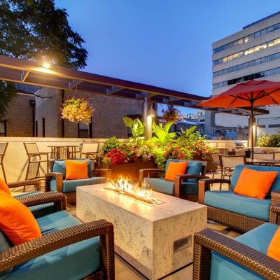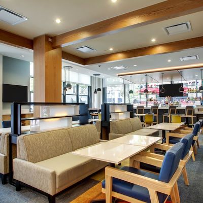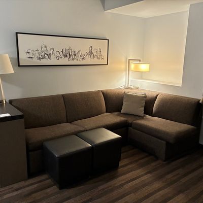 Reviewers highlight the hotel's convenient proximity to the Purple Line station and local shopping at Sherman Plaza. The lobby area is noted as a functional spot for a quick drink or a casual meeting.reviews_potoo