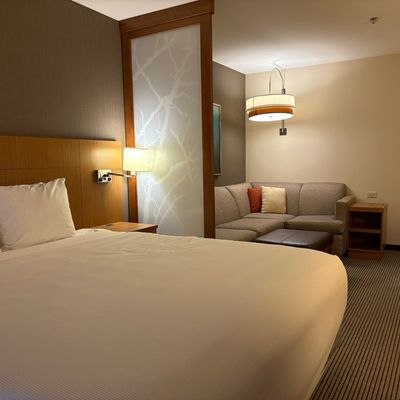 Modern hotel chain property offering comfortable accommodations and convenient access for travelers. It features spacious rooms, a complimentary breakfast with varied options, and a friendly, responsive staff.