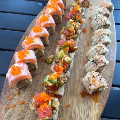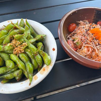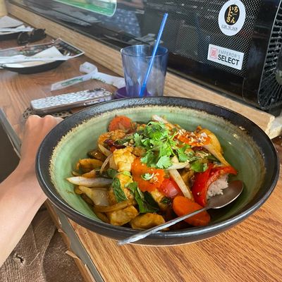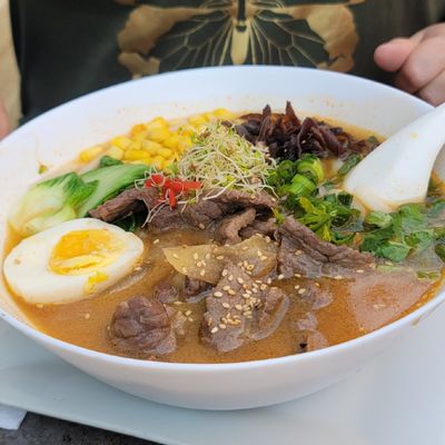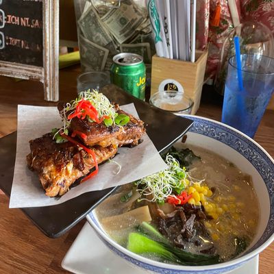 Highly-rated Asian restaurant with a lively atmosphere, offering ramen, sushi, and Thai dishes in an outdoor setting near a park.
