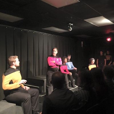 An improvisational performance titled 'Dinner With The Dixons' at Impro Studio.