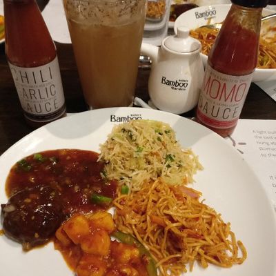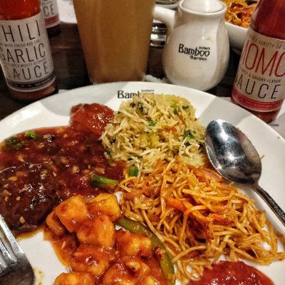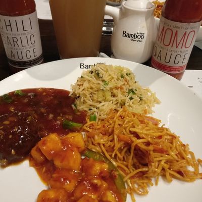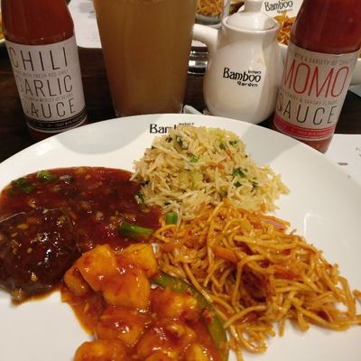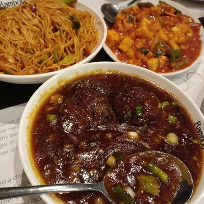 Casual Indo-Chinese restaurant with a rustic ambiance, offering a diverse menu with both vegetarian and vegan options.