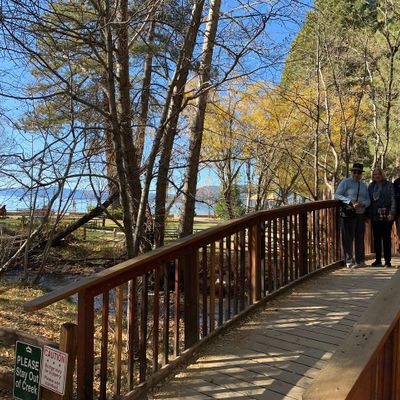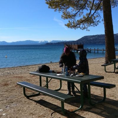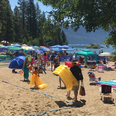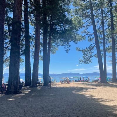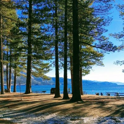 Scenic beach offering stunning views of the lake and surrounding mountains. It provides a serene environment with amenities like a snack shack and restrooms.