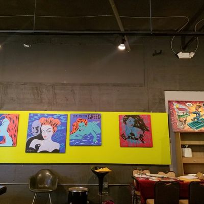 InsideOut Gallery offers a unique atmosphere with a blend of 50s memorabilia and contemporary art. This establishment features a full bar with custom cocktail options, beer, and wine, alongside outdoor seating.