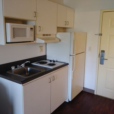 Extended stay hotel offering rooms with kitchenettes and refrigerators. It is designed for longer stays, providing fundamental necessities for temporary living.
