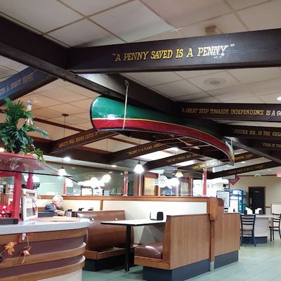 Chain diner in a truck stop offering classic American comfort food, including hearty breakfasts and burgers, with a buffet option and generally friendly service.