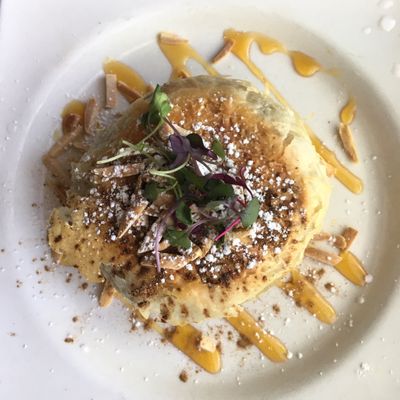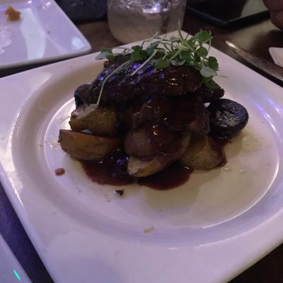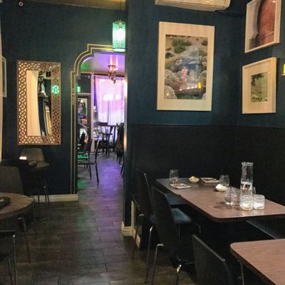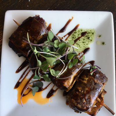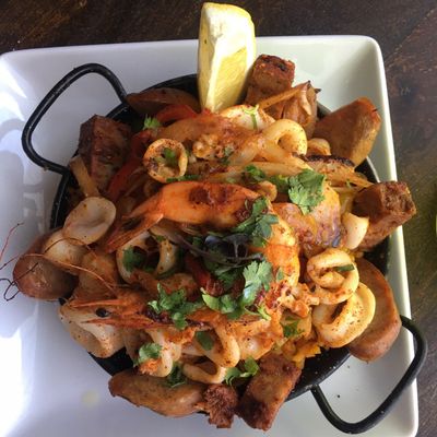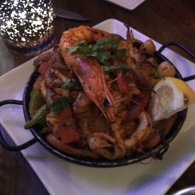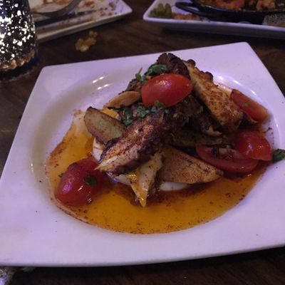 The tapas here are both tasty and artful, such as the grilled squid with zucchinis and romesco sauce, lemon chicken, and lamb skewers.