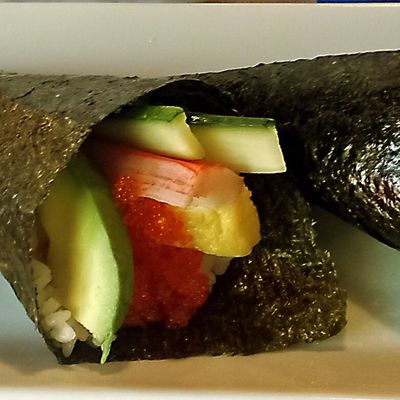 Western-style restaurant in a small town offering Thai and Japanese cuisine, including sushi and creative rolls, with a generally positive reception.