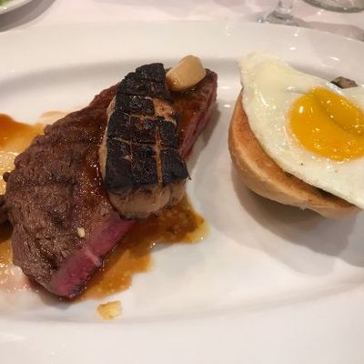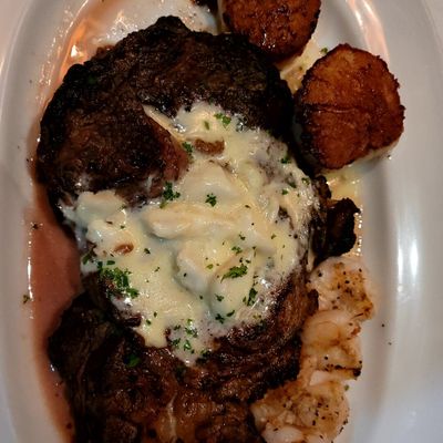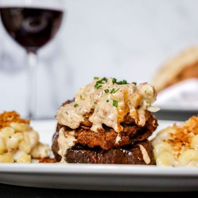 Indulge in the flavorful blue crab beignets for a unique starter. The menu focuses on high-quality steakhouse fare designed for a decadent dining experience.food_potoo