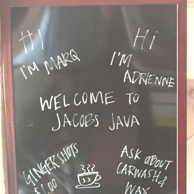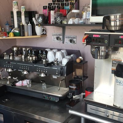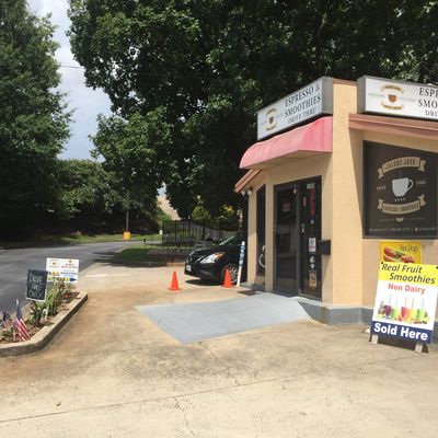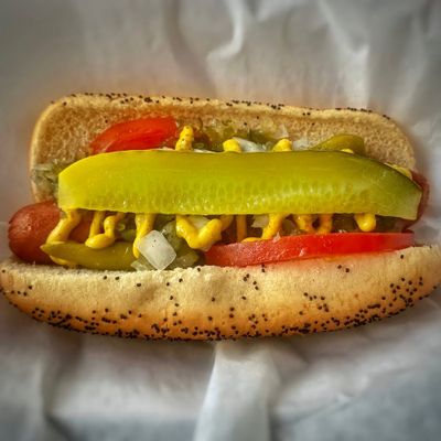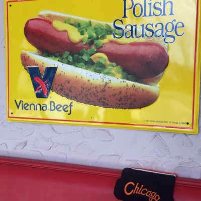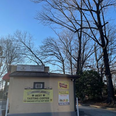 Cafe offering Chicago-style hot dogs, Polish sausage, and coffee, with a drive-thru, patio seating, and a welcoming atmosphere.