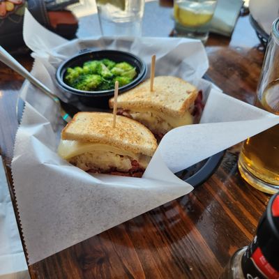 Local deli and pub with a large beer selection, offering creative sandwiches, pita pizzas, and excellent service in a casual sports-bar atmosphere.