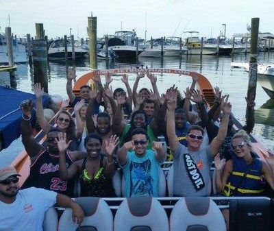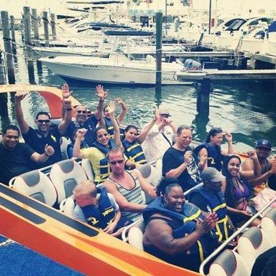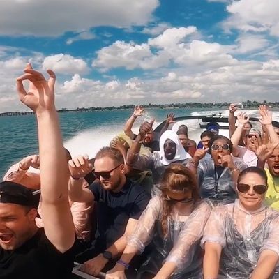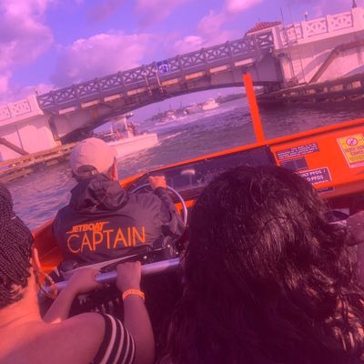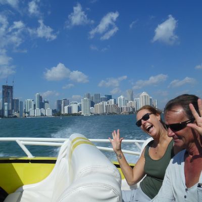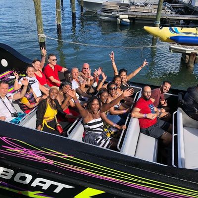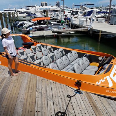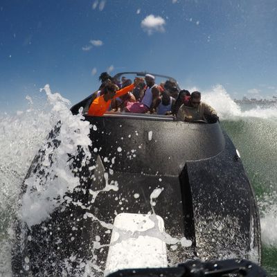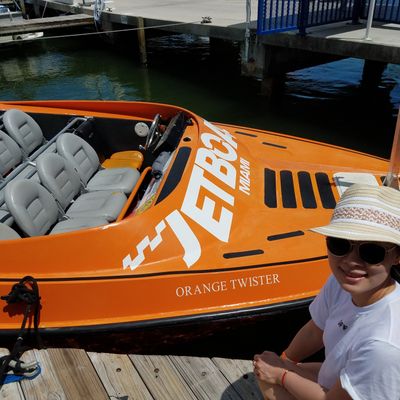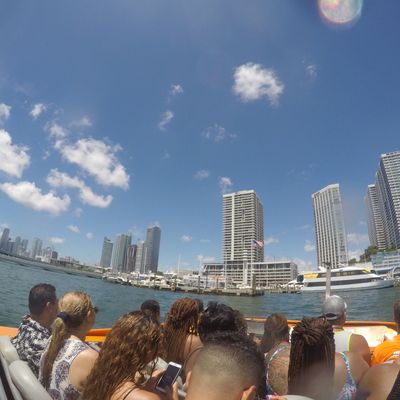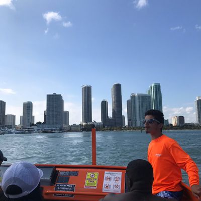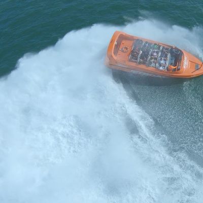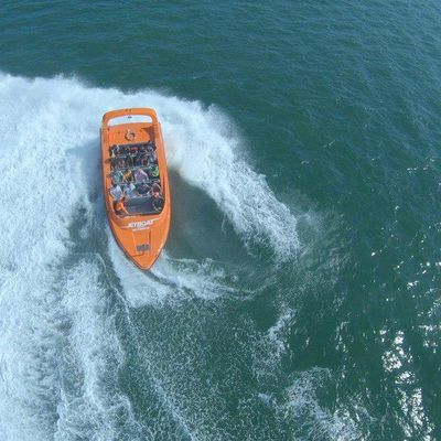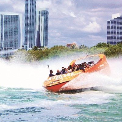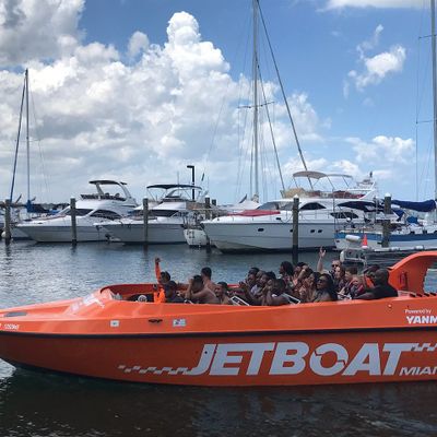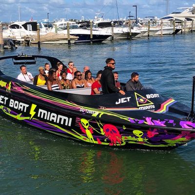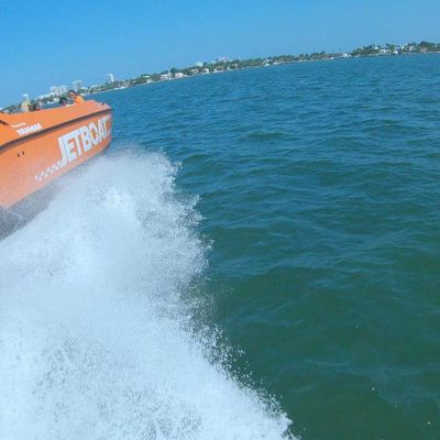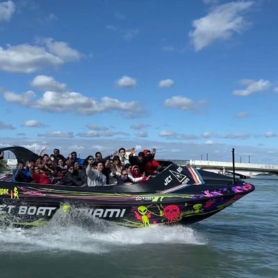 Jet Boat Miami offers an exhilarating marine adventure with high-speed maneuvers and scenic views. The experience includes thrilling spins, splashes, and opportunities for photos, all set to energetic music.