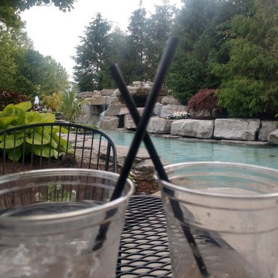 Lakeside bar and restaurant with American pub fare, including seafood, offering a relaxed atmosphere with a unique outdoor patio featuring a wading pool and waterfall. long_description