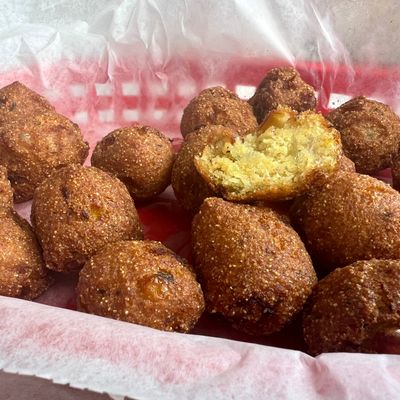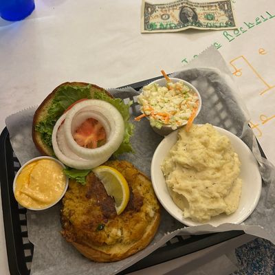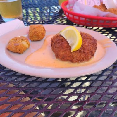 Waterfront seafood bar with American cuisine, known for its hushpuppies and seafood dishes.