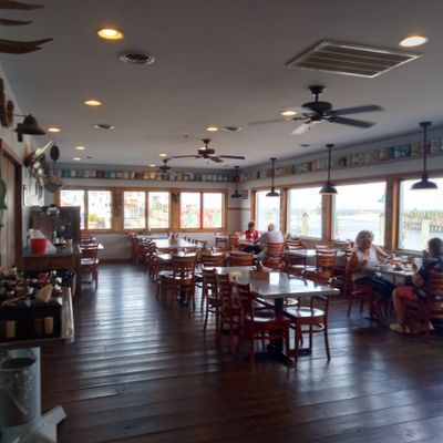 Waterfront seafood restaurant with a beautiful view, offering American cuisine and a full bar.
