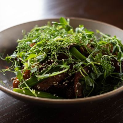 The menu features creative small plates with bold flavors and a variety of gluten-free and vegan options. Focus on the diverse textures and traditional inspirations found in their Asian-inspired dishes.food_potoo