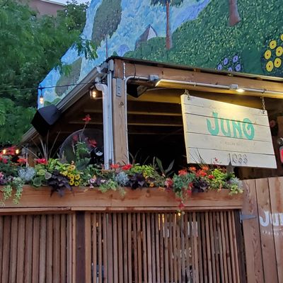 Juno, a colorful, all-outdoor venue, seats 80 diners ready to sip margaritas and snack on tacos.