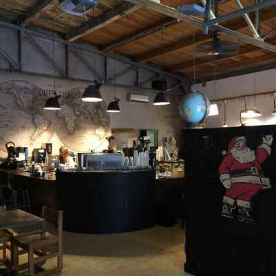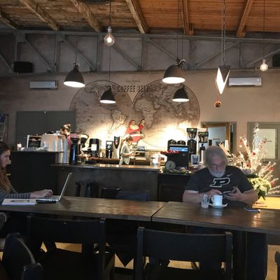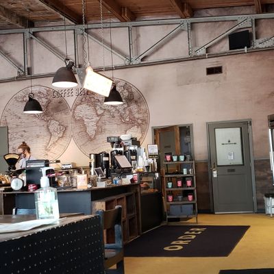 Renovated garage-style coffee shop in a funky neighborhood offering globally-sourced coffee, specialty lattes, and teas.