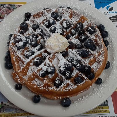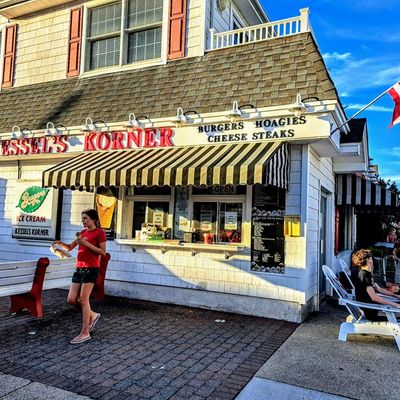 Strawberry-topped Belgian waffles, flavorful cheesesteaks, and milkshakes fill the menu at Kessel's Korner, a spot for a quick lunch break near the surf.
