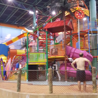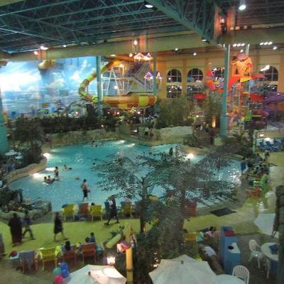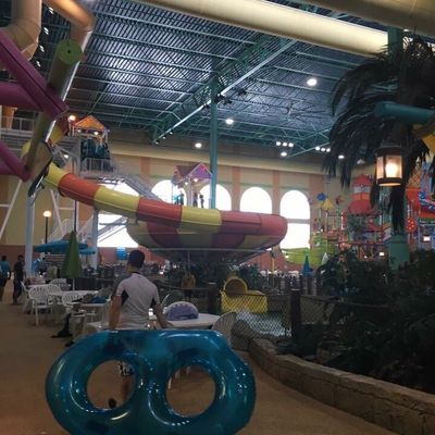 Family-friendly destination offering an indoor waterpark experience. The resort features various water attractions, including slides, a wave pool, and a lazy river, along with an arcade and other entertainment options.