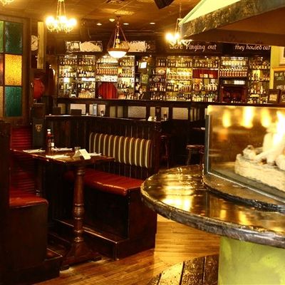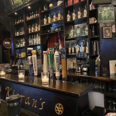 Kieran's Irish Pub offers a cozy back room with dusty bookshelves, portraits of long-gone poets, and a Medieval-style wall mural for its monthly poetry slam.