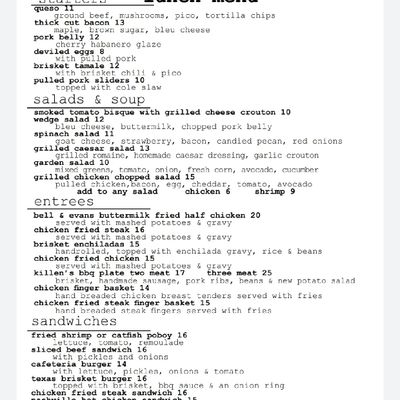Killen's serves top-notch chicken-fried chicken with mashed potatoes alongside starters like honey butter truffle biscuits, sandwiches, brisket enchiladas, and Southern-style sides.