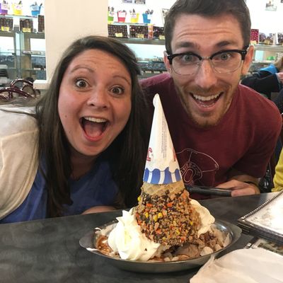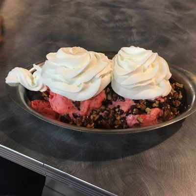 Vintage ice cream parlor with a huge menu of homemade ice cream, sundaes, shakes, chocolates, and candies, offering table service in a classic setting.