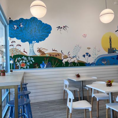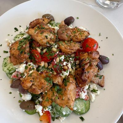 Fulfill your lunch or brunch craving with feta and spinach-stuffed Spana omelets, mezze boards, and Mizithrapita cheese-stuffed pancakes topped with honey drizzle.
