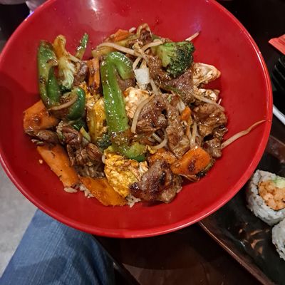 Busy, casual Mongolian stir-fry and sushi restaurant with generous portions and a build-your-own-bowl option.