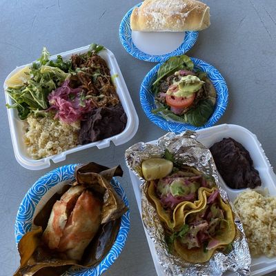 Try the Cochinita Pibil Platillo, a signature dish of Mayan-style marinated citrus pulled pork, slowly baked overnight and topped with pickled red onions. Don't miss the Hojaldra, a sweet, flaky pastry with ham and cheese inside.
