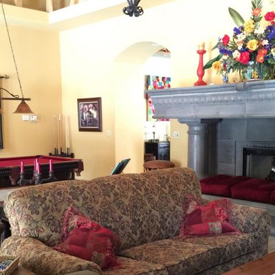 Unique retreat offering a tranquil getaway with authentic Mexican decor and craftsmanship throughout. Guests can enjoy a variety of amenities including a pool, hot tub, sauna, and ping-pong table.