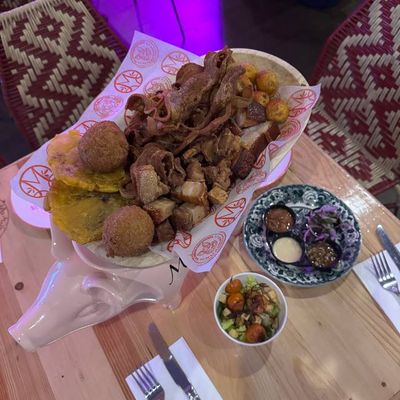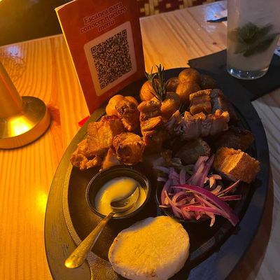 Vibrant Latin American restaurant with live music, known for its Colombian cuisine and delicious chicharrones, offering a festive atmosphere.