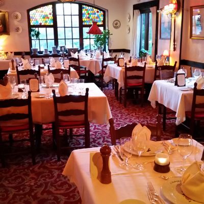 Indulge in classic French fare fireside at this picturesque farmhouse, a culinary getaway with live music and two outdoor gardens.