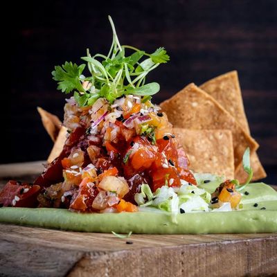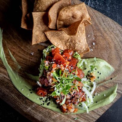 Locally-owned, upscale American restaurant in a historic building, offering creative shared plates, a full bar with house-infused spirits, and a contemporary atmosphere.