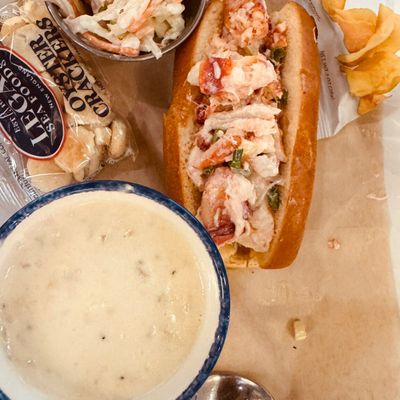 Chain airport seafood restaurant in Terminal E offering New England classics and sushi, with some non-seafood options.