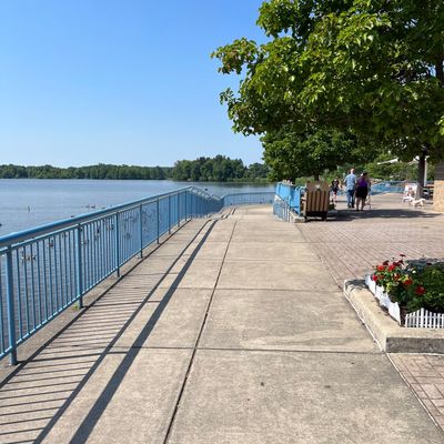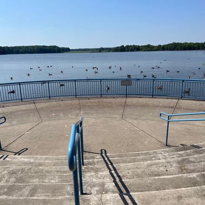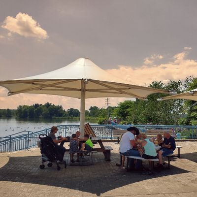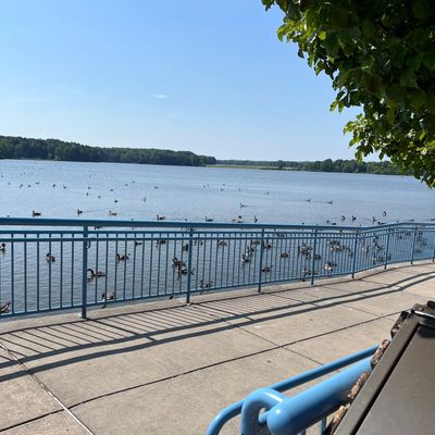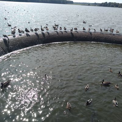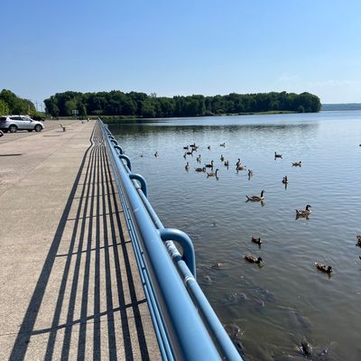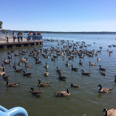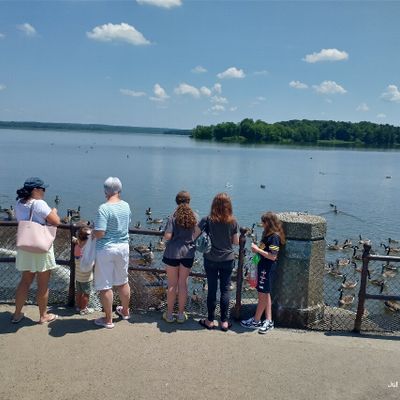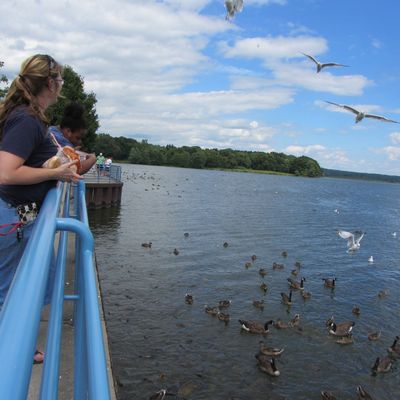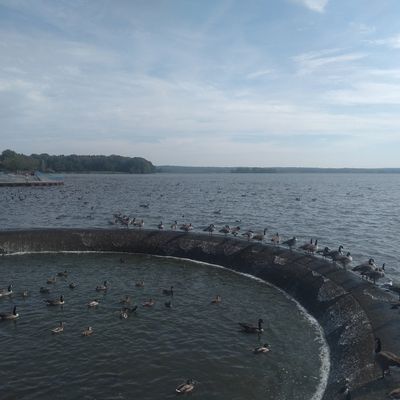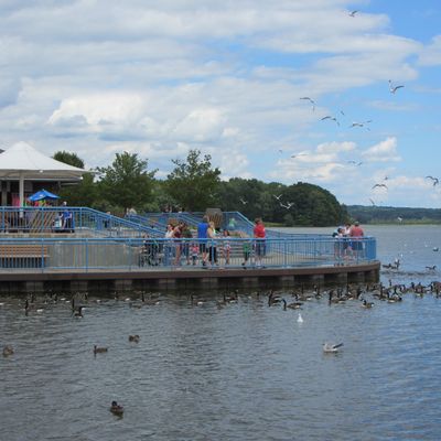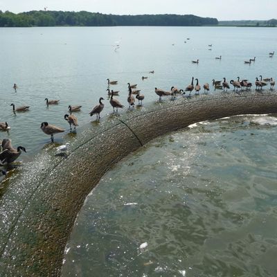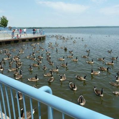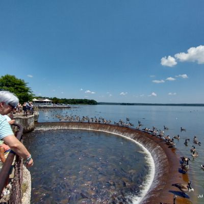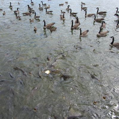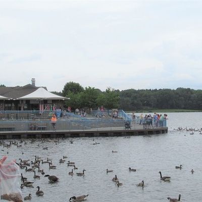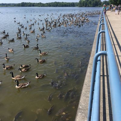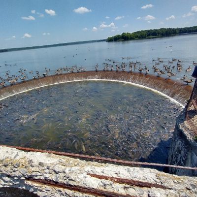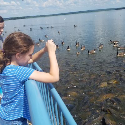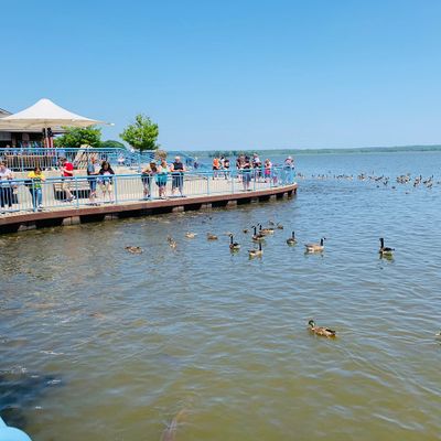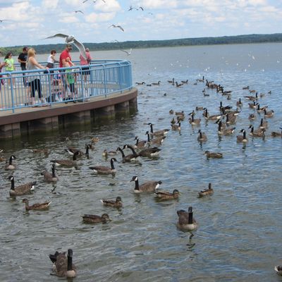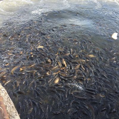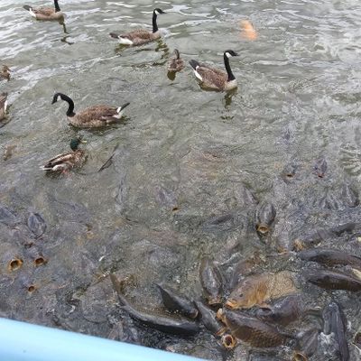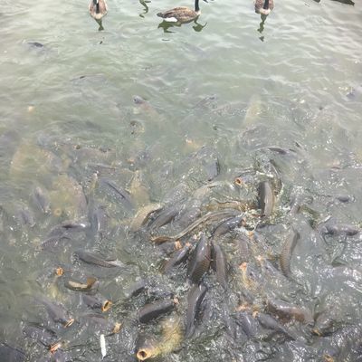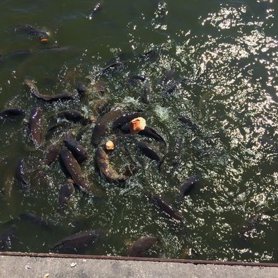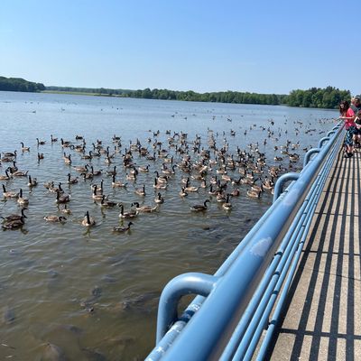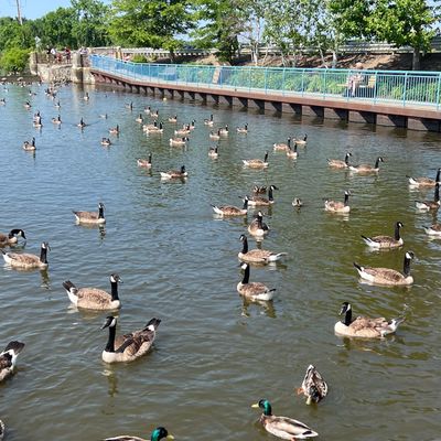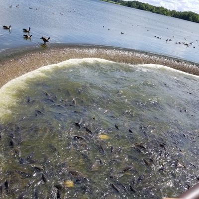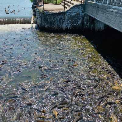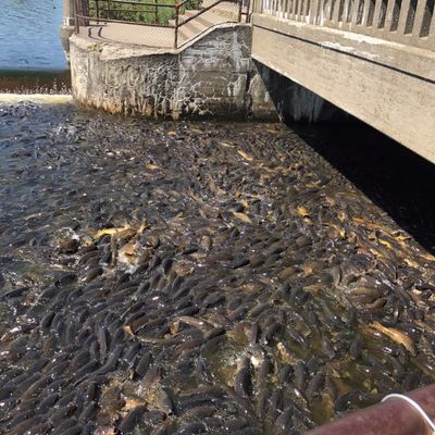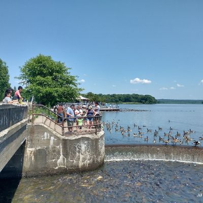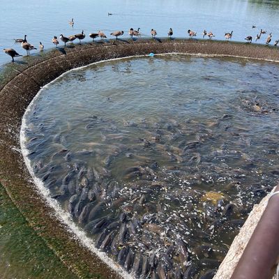 Unique outdoor attraction centered around a large spillway teeming with carp, ducks, and seagulls. Visitors can purchase bread on-site or bring their own to feed the abundant aquatic and avian life.