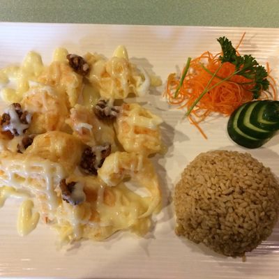 Popular restaurant offering a diverse menu of Chinese, Japanese, and Thai dishes, including sushi and hibachi, known for generous portions and appealing presentation.