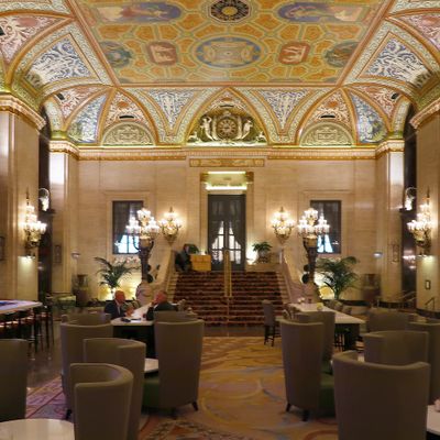 Fine-dining American restaurant in a historic hotel, offering breakfast, lunch, and dinner with a varied menu including salads and other American fare, plus a lively bar.