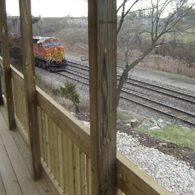 Dedicated railroad park designed for enthusiasts to observe trains. It features a sheltered overlook with an exterior platform providing elevated views of a busy railway mainline.