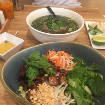 The oxtail soup noodles are a standout, offering a rich and savory broth. You can also enjoy fresh spring rolls and egg rolls, which are great for sharing.food_potoo