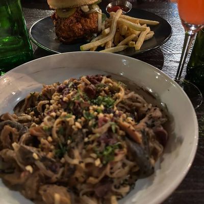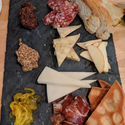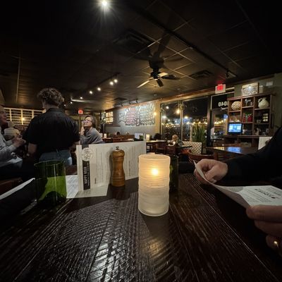 Funky wine bar restaurant with American contemporary cuisine, offering a diverse menu including gluten-free options and a large wine selection, known for its relaxed atmosphere and generally good food.