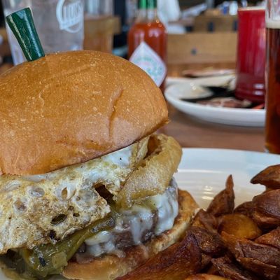 Modern, upscale restaurant at a golf course with stunning views, offering American cuisine including burgers and breakfast items.