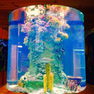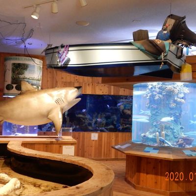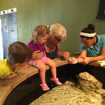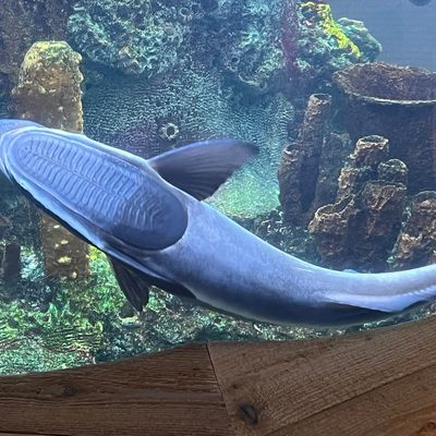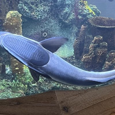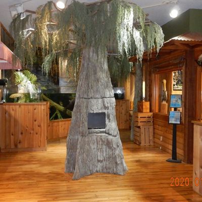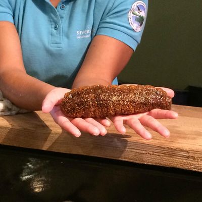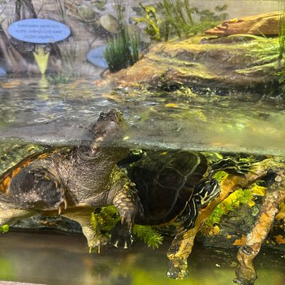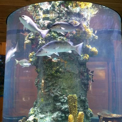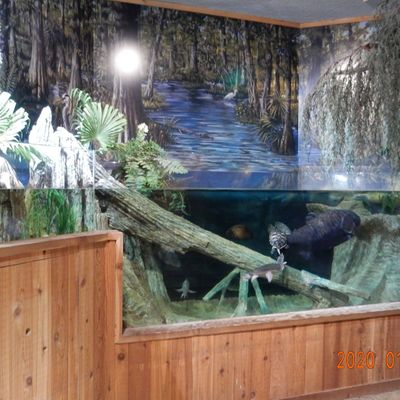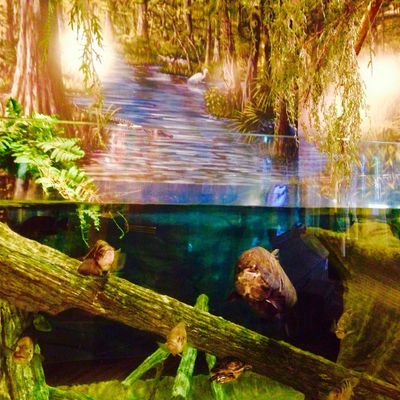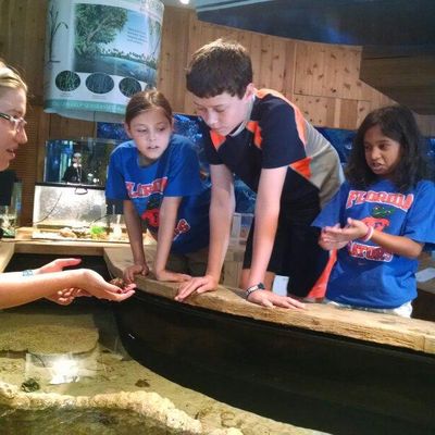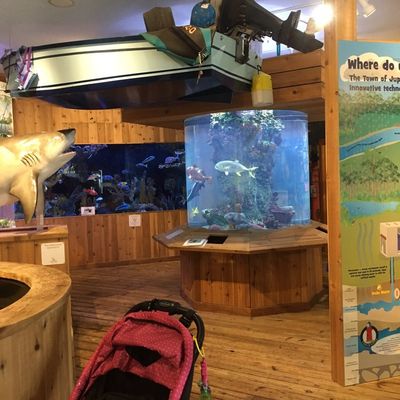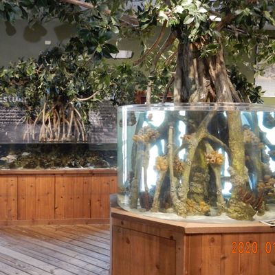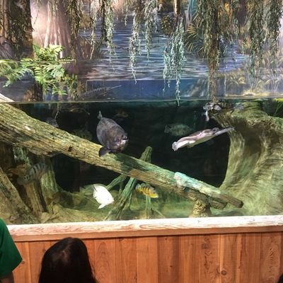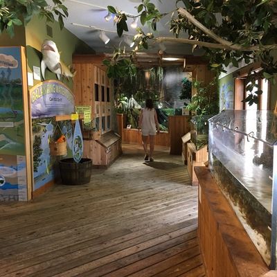 The atmosphere is educational and engaging, centered around interactive touch tanks and live ecosystems. It serves as an immersive space where visitors can observe the transition from freshwater cypress swamps to marine environments.ambiance_potoo