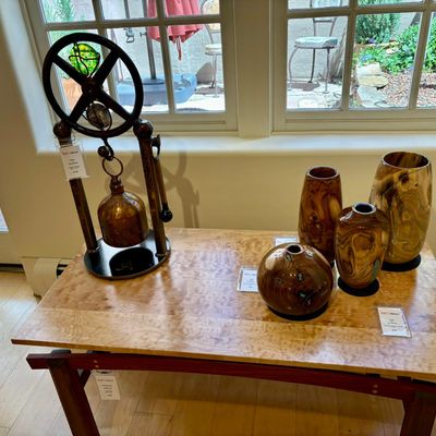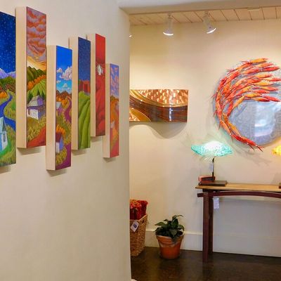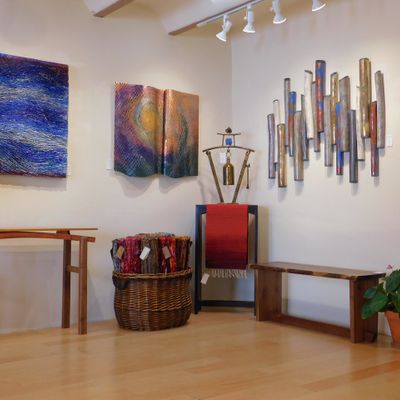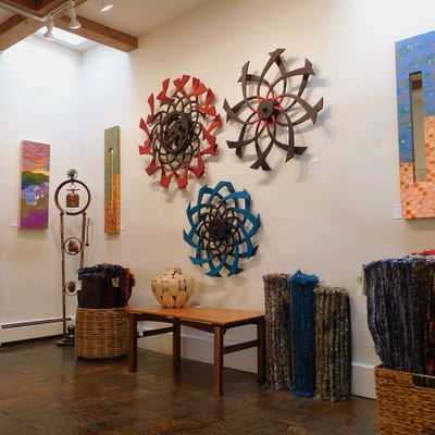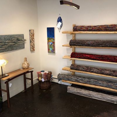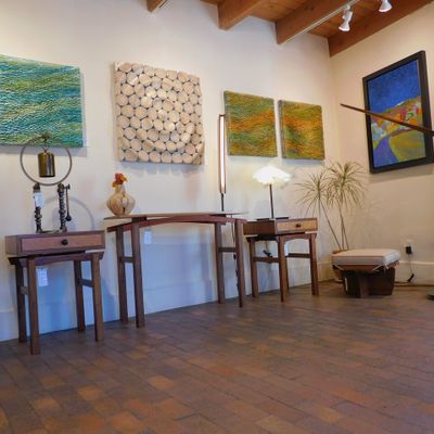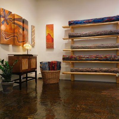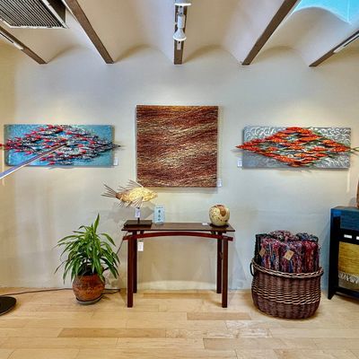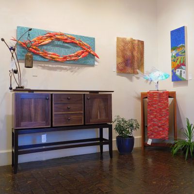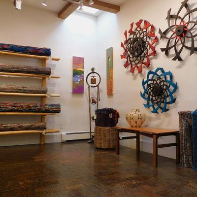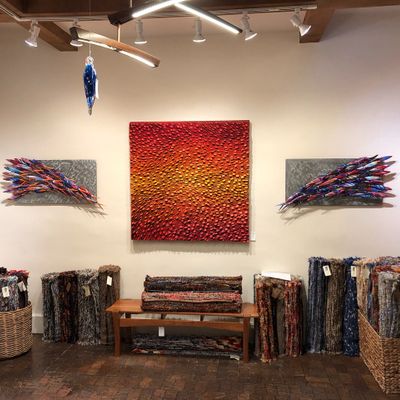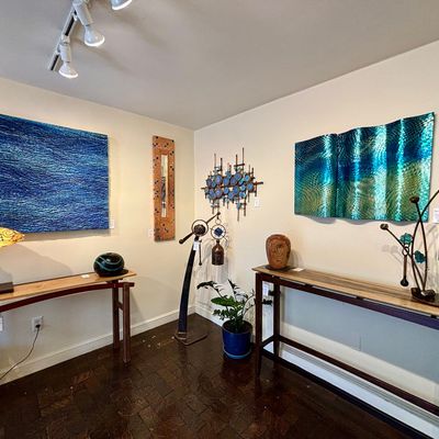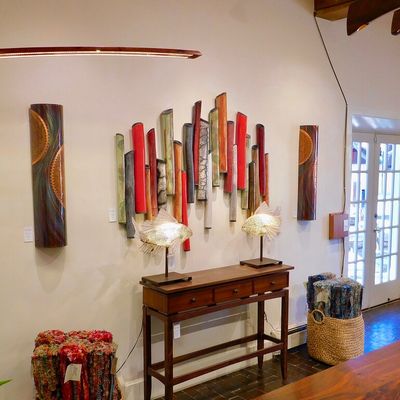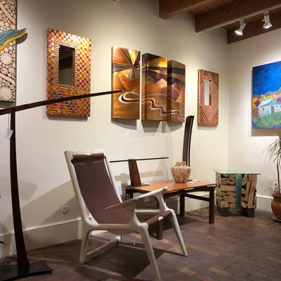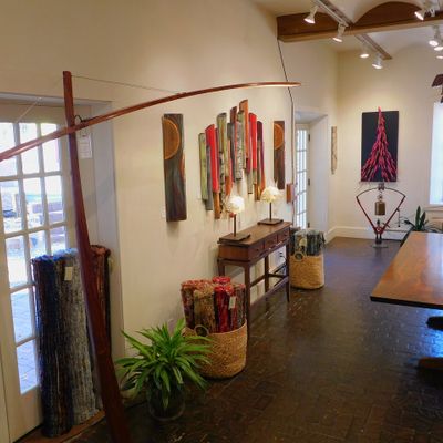 Gallery specializing in contemporary art and furniture with unique, bright accents. It features a diverse collection of pieces, including sculptures, textiles, and home accessories, often with a modern aesthetic.