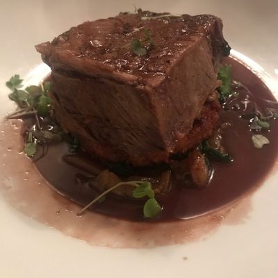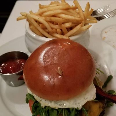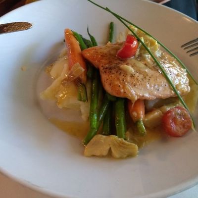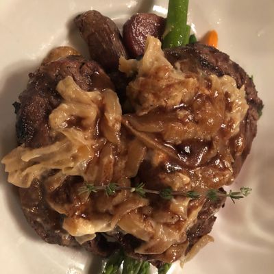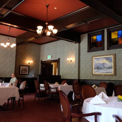 American restaurant in a historic building, offering upscale dining with a focus on elegant ambiance and attentive service; the menu features varied dishes including steaks and seafood.