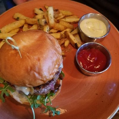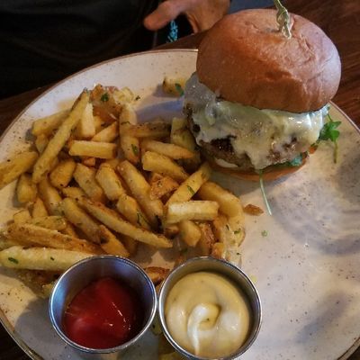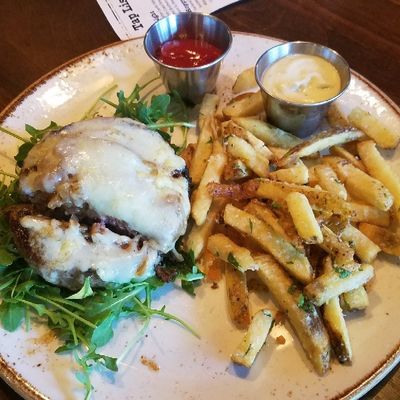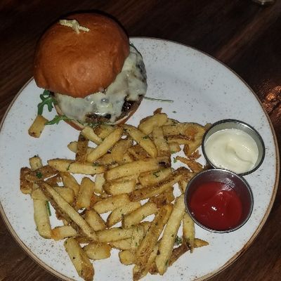 Bay Park casual eatery with a lively atmosphere, serving American and Italian-influenced dishes like pizza, burgers, and salads, plus a full bar.