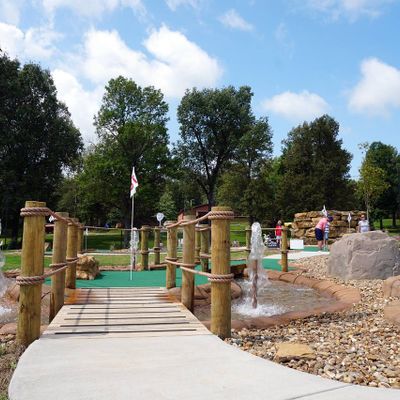 Beautiful recreational area offering a variety of amenities for families and individuals. It features a new playground, mini golf, a swimming pool, and a splash pad, making it ideal for summer fun.