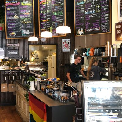 Cozy cafe offering American breakfast and lunch fare, featuring coffee specialties and fresh baked goods in a comfortable setting.