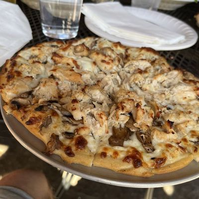 Casual, family-friendly pizzeria and bar in a historic area, offering pizza, salads, and sandwiches with generous toppings and a good beer selection; service can be inconsistent.