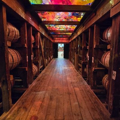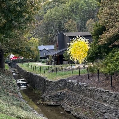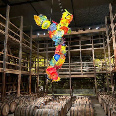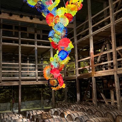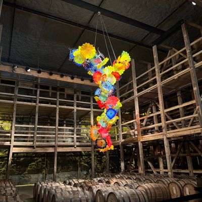 Renowned bourbon distillery offering an immersive visitor experience. The campus is celebrated for its scenic beauty, blending natural landscapes with striking art installations, notably featuring the works of Dale Chihuly.